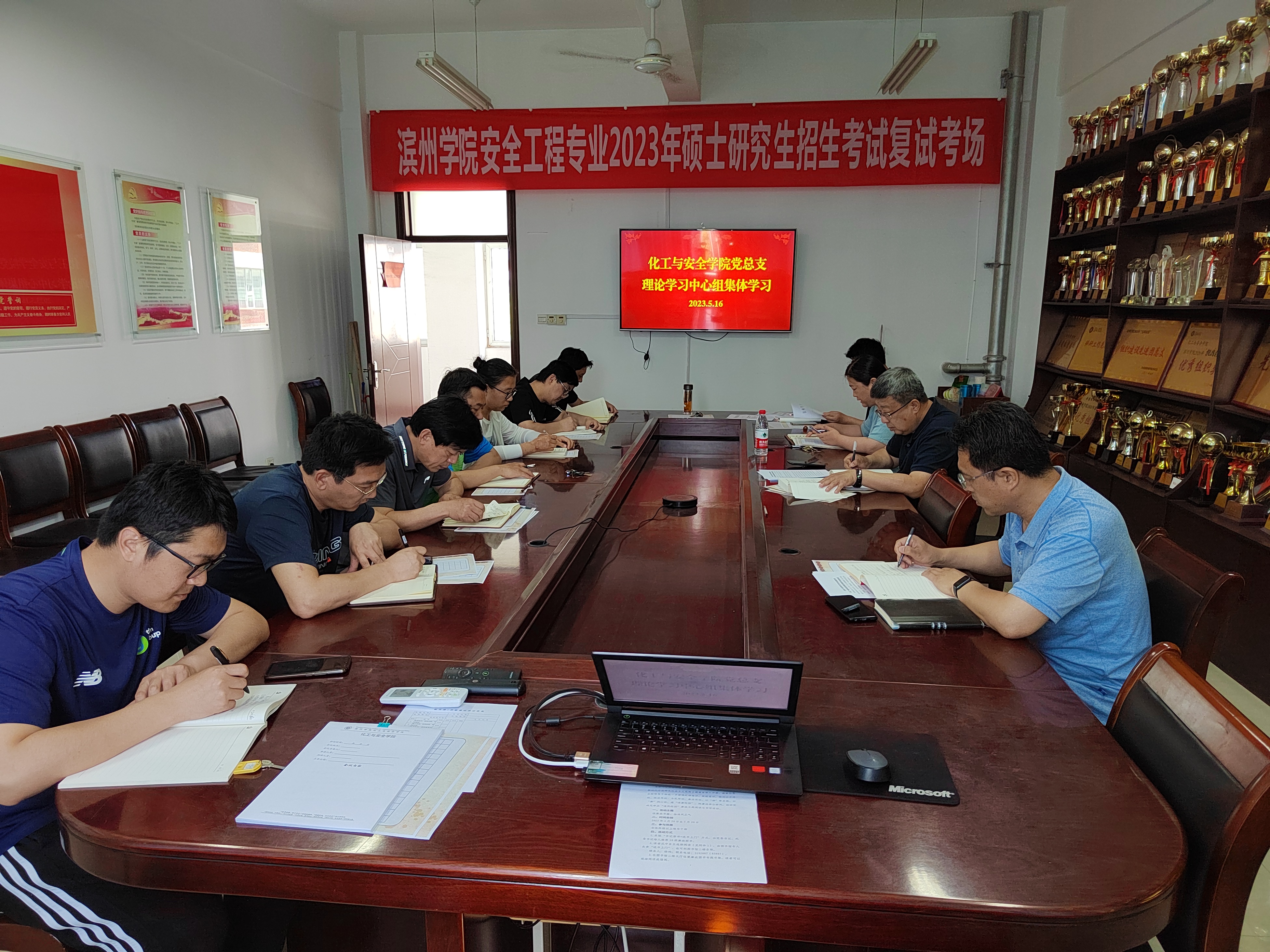 5月16日,化工与安全学院理论学习中心组(扩大)举行集体学习,领导班子成员和支部书记读原著、学原文、悟原理,围绕《高举中国特色社会主义伟大旗帜为全面建设社会主义现代化国家而团结奋斗》单行本、《中国共产党章程》《习近平著作选读》《习近平新时代中国特色社会主义思想专题摘编》等学习资料交流心得体会。