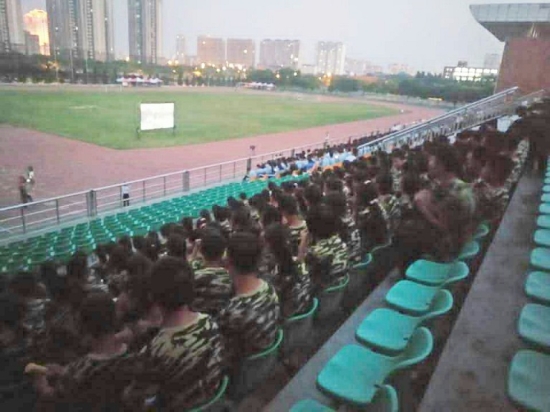 为增加同学们的爱国主义精神,更好的发扬军训不屈不挠的斗志,滨州学院在田径场组织观看爱国主义电影《战狼》,我院2017级全体新生参加。