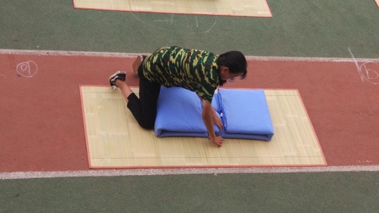 活动伊始,我院的选手们就做着“热身运动”,为取得优异的成绩做准备。此次军被大赛共分两个环节,男生女生分开比拼,随着主持人一声令下,各参赛选手就开始认真地叠起军被,我院新生代表游刃有余的将被子叠成了标准的“豆腐块”,40多条清一色的被子有序的呈现在红色的跑道上,格外夺目,现场气氛紧张热烈。五分钟的限时赛虽说很短,但我院的选手信心满满,充分彰显出学院学子踏实肯干的品质,赢得了现场观众的阵阵掌声。随后,多位评委进行了现场评分。