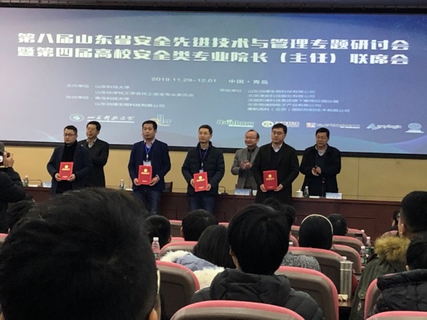 此次会议同时对山东省第二届安全科学与工程类专业大学生科技竞赛优秀作品进行了颁奖。通过安全科学与工程领域专家评审,并经评审委员会评议,我校获得优秀组织单位奖,申建军、马有营、付明明三位老师获得优秀指导教师奖。