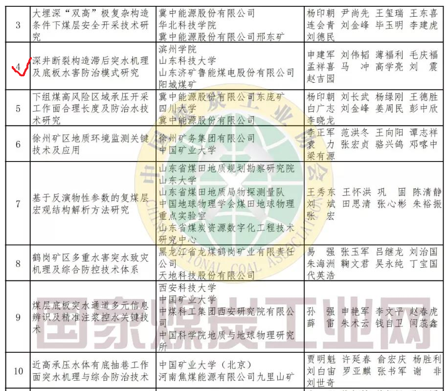 日前,中国煤炭工业协会发出《关于公布表彰2019年度中国煤炭工业协会科学技术奖获奖项目和个人的决定》,经过专家组专业评审、综合评审,评审委员会审定及公示,共评出获奖项目304项。其中,我校作为第一完成单位、申建军博士作为第一完成人完成的《深井断裂构造滞后突水机理及底板水害防治模式研究》项目荣获三等奖。