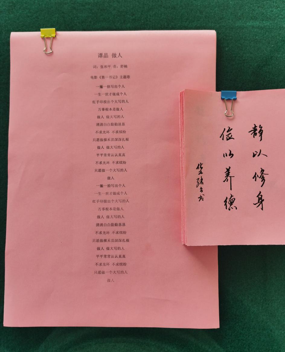 活动开始党总支副书记贾丽带领全体教工领唱了电影《第一书记》的主题歌《做人》、诵读了廉洁诗词《书端州郡齐壁》和《咏史》。