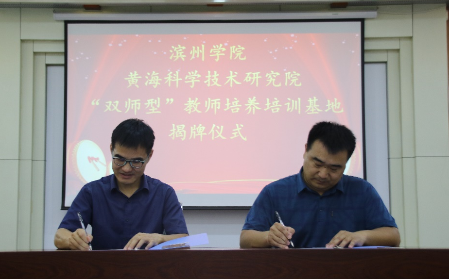 为进一步健全完善校企双方师资培养培训体系,深化新时代职业教育“双师型”教师队伍建设,2022年8月23日,滨州学院化工与安全学院“双师型”教师培养培训基地合作签约授牌仪式在黄海科学技术研究院有限公司隆重举行。化工与安全学院院长杨仲年教授,副院长赵英渊,挂职锻炼教师谢彦和刘姗姗,黄海科学技术研究院有限公司副总经理孟令华,人力资源部主任孙乃玉参见了签约授牌仪式。