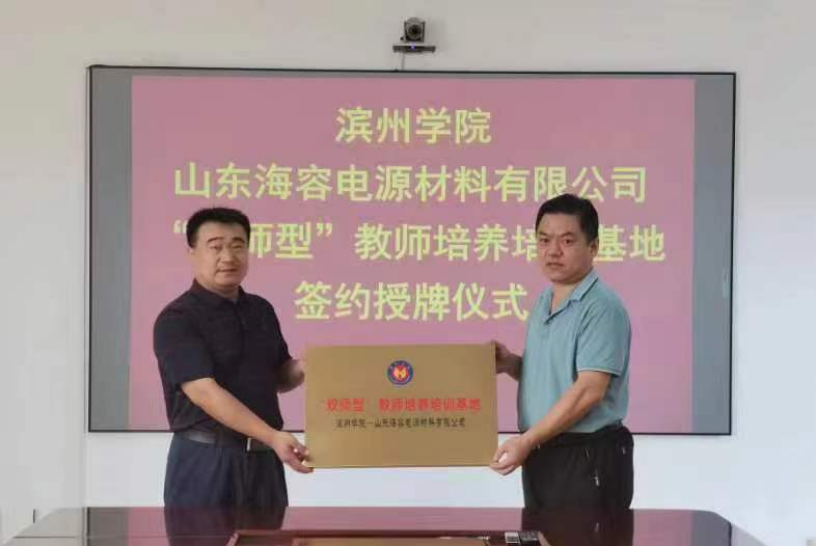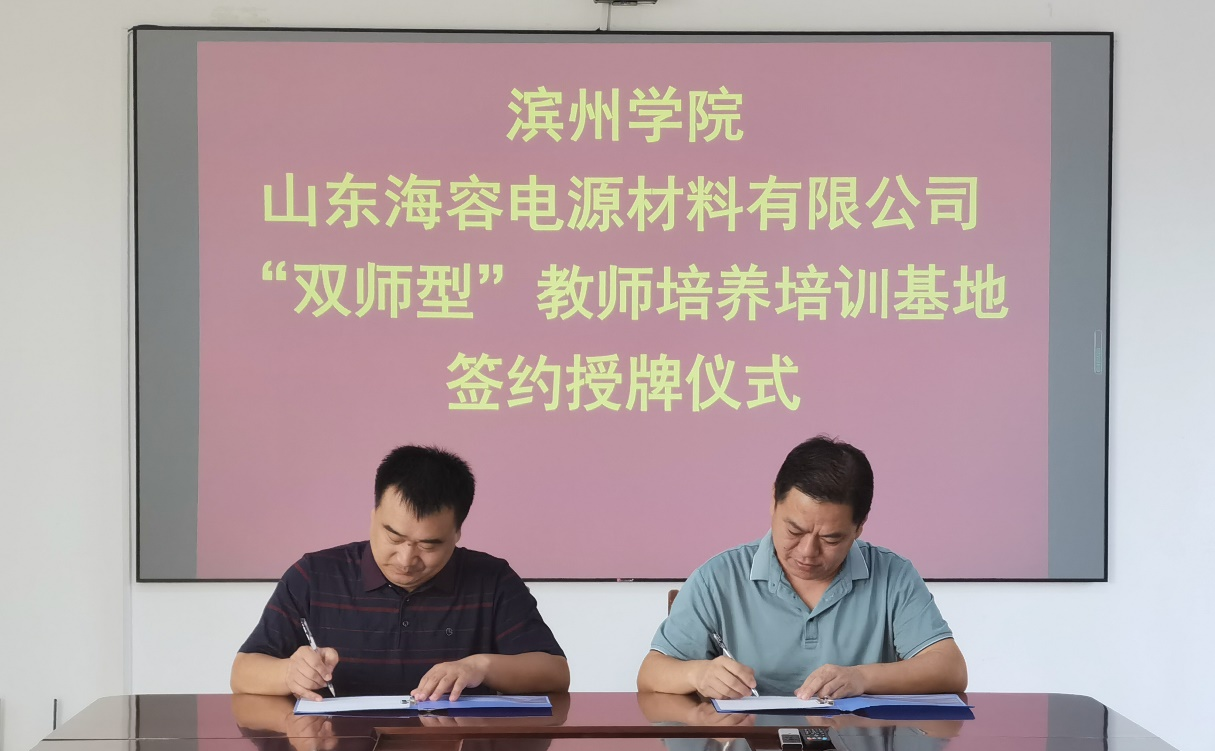 为进一步健全完善校企双方师资培养培训体系,深化新时代“双师型”教师队伍建设,2022年8月25日,滨州学院化工与安全学院“双师型”教师培养培训基地合作签约授牌仪式在山东海容电源有限公司隆重举行。化工与安全学院院长杨仲年教授,我院在公司挂职和顶岗锻炼教师代表,山东海容电源有限公司副总经理郭庆元,人力资源部主任王忠霞参见了签约授牌仪式。