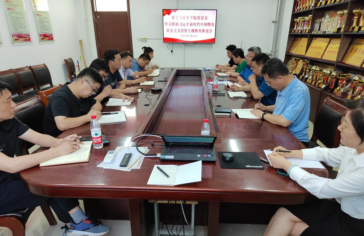 为做好学习贯彻习近平新时代中国特色社会主义思想主题教育,不断巩固和深化主题教育成果,化工与安全学院党总支于5月23日在8教316会议室召开主题教育工作推进会。会议由党总支书记、主题教育领导小组组长王建主持,党总支理论学习中心组成员,各党支部书记等参加。