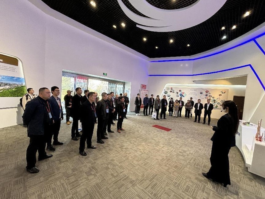 图1 参观万华展馆(注图中红色地毯为2018年习近平总书记考察讲话处)