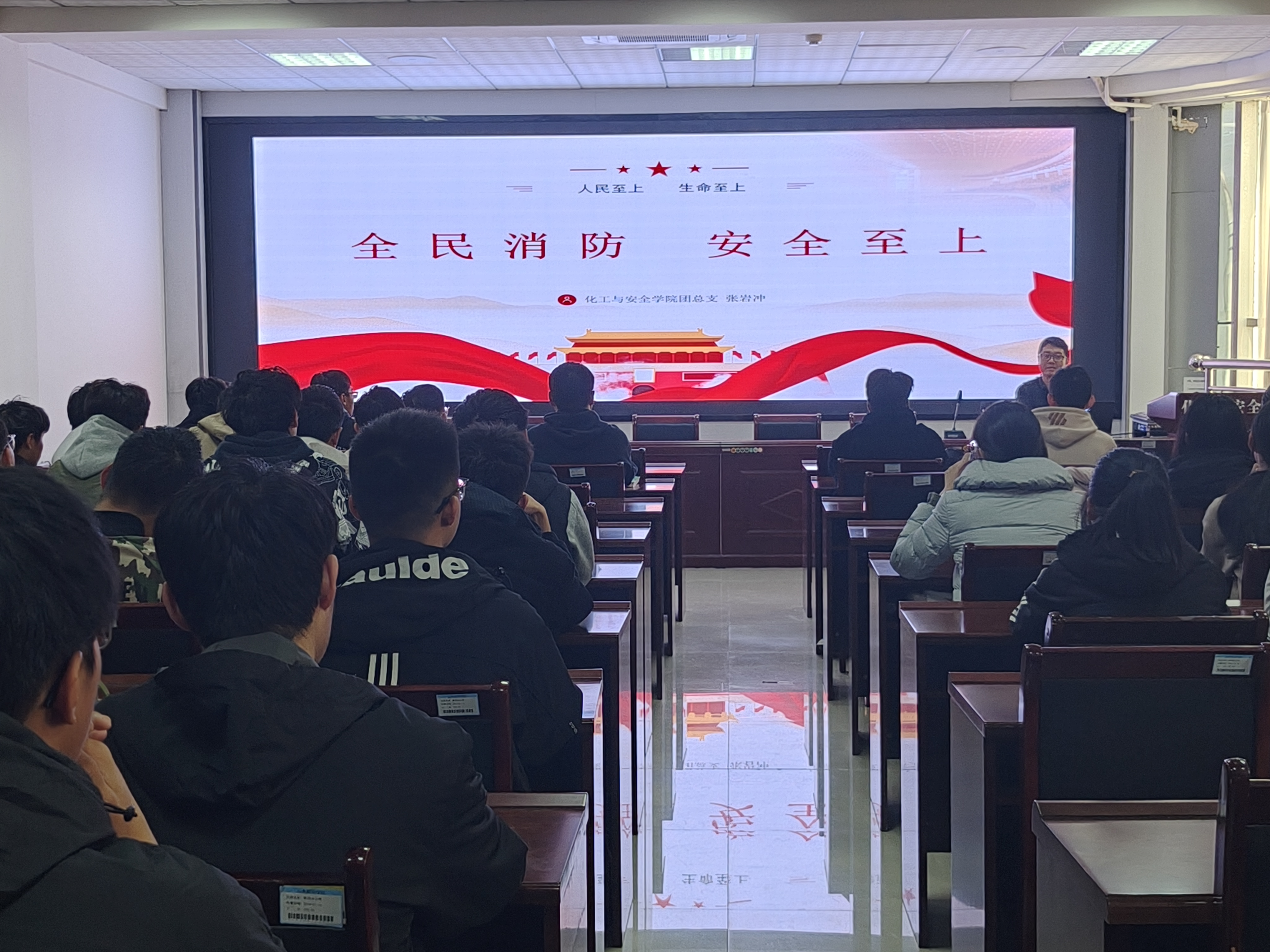 11月8日,我院在第九教学楼313教室举办消防安全专题讲座。本次讲座由学生科科长张岩冲主讲,24级全体新生参与,共同学习消防安全知识,旨在深入贯彻“人民至上、生命至上”的安全发展理念,进一步提升学生的消防安全意识和自我保护能力。