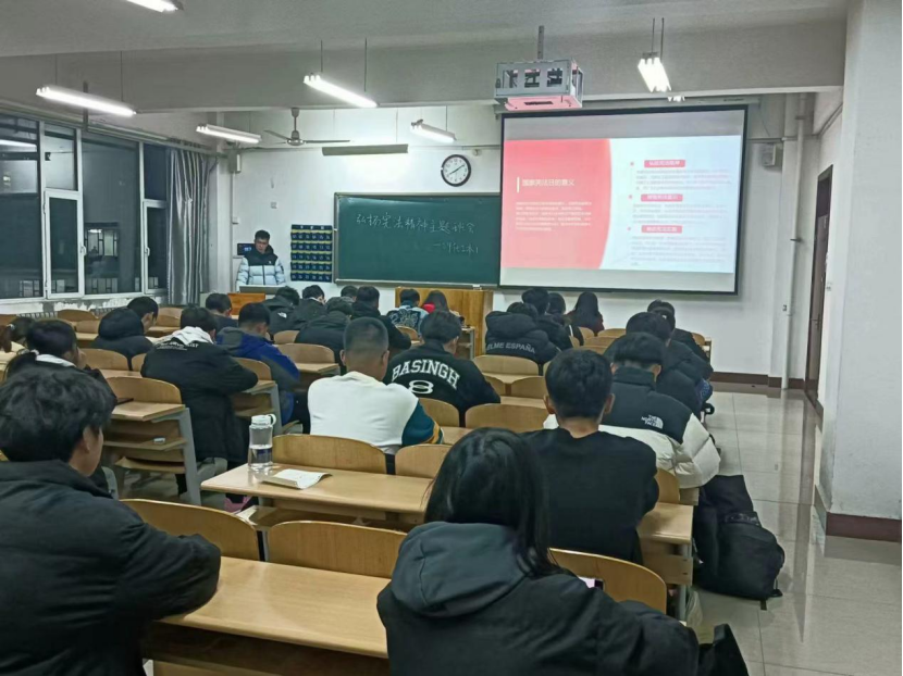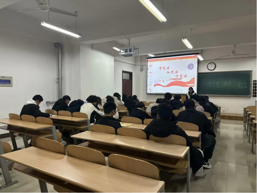 12月1日,我学院开展“宪法精神教育”主题班会,旨在深入学习贯彻习近平法治思想,提升学生法治意识。我院全体学生参与。