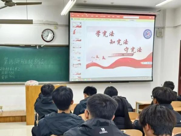 班会上,各班负责人详细介绍了宪法的基本特征、原则及地位,并通过国家宪法日的来历加深了学生对宪法的理解与认识。通过生动的讲解和丰富的案例,学生意识到宪法在日常生活中的重要性,以及作为大学生在法治建设中的责任与使命。