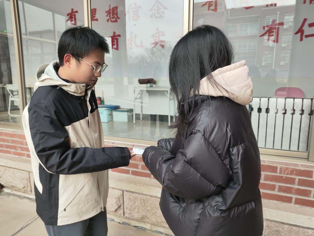 学生们组成流动小组,在教学楼旁寻找正在备考的考研学生,亲手将这些温暖的礼物送到他们手中,并送上真挚的祝福和鼓励。备战考研的学生们对这份突如其来的温暖礼物感到惊喜,这些真挚的话语如同冬日里的暖阳,慰藉了他们疲惫的心灵,激励他们在考研的道路上更加努力,勇敢追逐梦想。