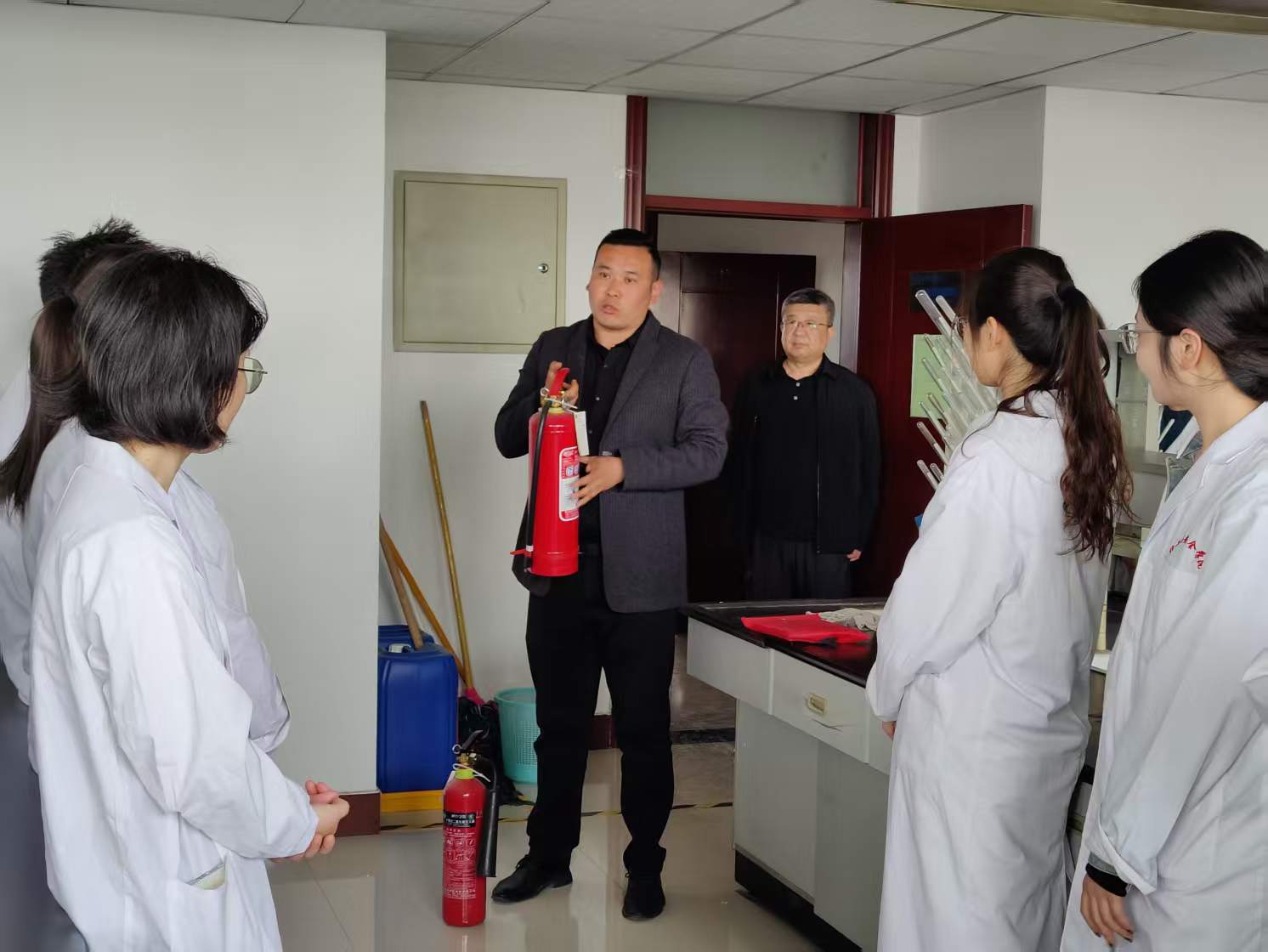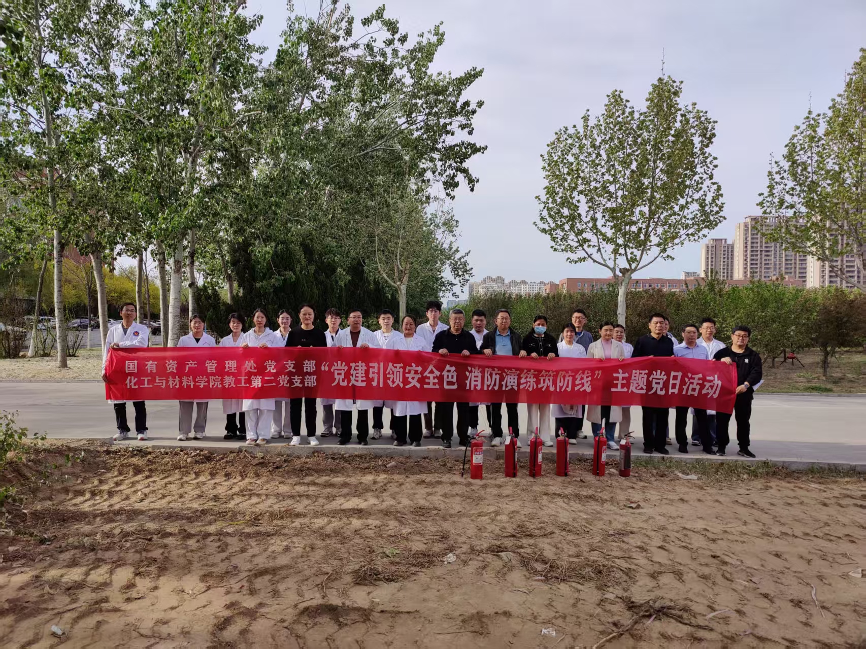 4月15日下午,我院教工第二党支部和国有资产管理处党支部联合开展“党建引领安全色·消防演练筑防线”主题党日活动,我院党委书记王建、党委副书记李芳、教工第二党支部全体党员和部分师生代表参加活动。