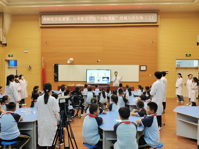 4月29日下午,滨城区第八中学的教室里传来阵阵惊叹,英国正版365首页“学海领航”团队第三次走进这里,用三个趣味化学实验为同学们开启了一场沉浸式的科学探索之旅。