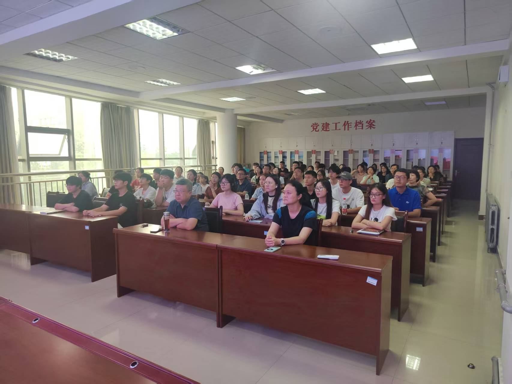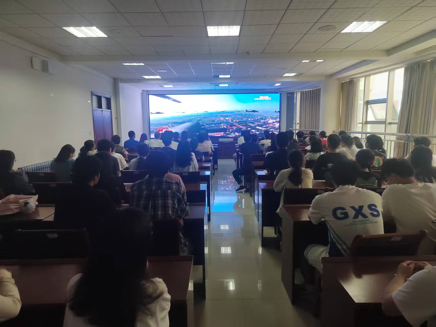 虽值开学伊始,但师生参与热情高涨。阅兵仪式开始前半小时,会议室已座无虚席。许多师生提前抵达,静候仪式开始。到场师生中,既有学院领导、中层干部、各学科教师,也有满怀激情的青年学子,大家精神饱满,着装整洁得体,展现出我院师生良好的精神风貌和对此次盛事的高度重视。