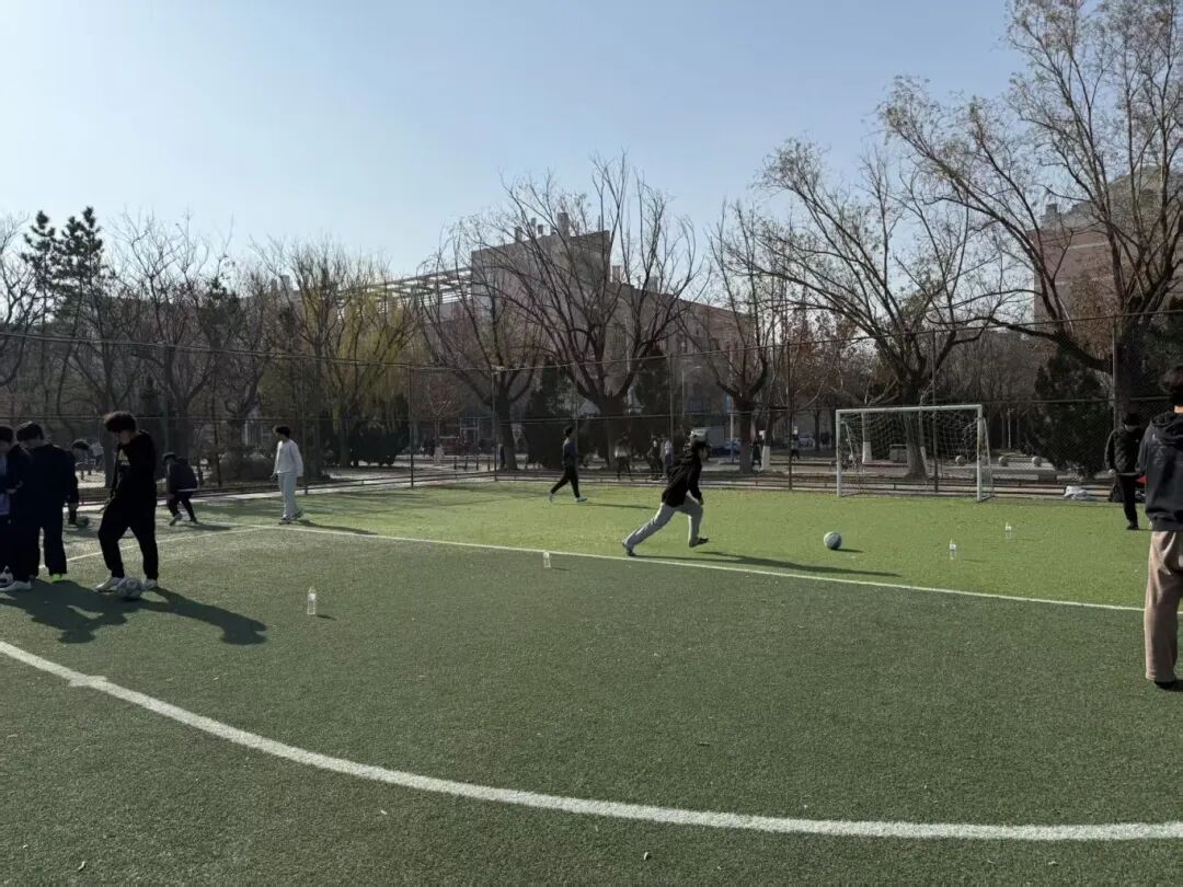 本次活动以“运动解压、同心聚力”为核心,采用积分制形式,设置足球踢矿泉水瓶、折返跑射门、反应测试、带球射门四项趣味环节,将体育竞技与心理疏导有机结合。活动中,同学们在轻松氛围里踊跃参与,绕桩带球时相互鼓劲,射门比拼中释放情绪,协作闯关时默契配合。现场欢呼声与笑语交织,不仅让大家在运动中舒缓了身心压力,更在互动协作中增进了彼此信任,感受到团队支持的温暖力量。